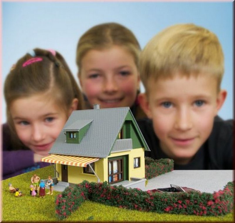 Staňte se společně se svými dětmi nebo vnoučaty součástí naší velké „modelářské rodiny“ a uskutečněte prostřednictvím této sady pro začátečníky sen rodiny Meierových o vlastním domově. Představte si: Rodina Meierových si na svém pozemku postaví nádherný dům. Moderní terasa je kryta markýzou. Dům obklopují truhlíky osázené pestrými květinami, prostorný trávník, borovice a živý plot. Pro příjemné večery je již u krbu připraveno dříví. Přátelé a příbuzní mohou při příští návštěvě přijet svým autem po nově vybudované silnici přímo k domovním dveřím. Slunečné počasí zve ke společnému grilování. Doplňkové postavy a automobil se mohou v jednotlivých sadách lišit. Sadu pro začátečníky Auhagen obdržíte v atraktivním balení, které může být také skvělým dárkem.
