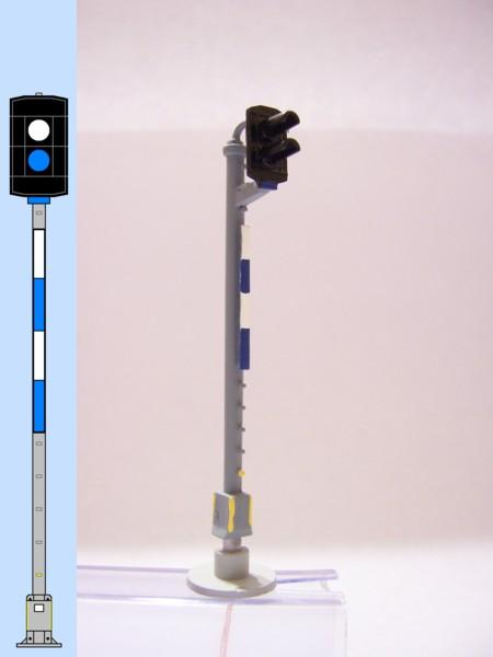 Seřadovací návěstidlo (B,M), barva bílá a modrá.