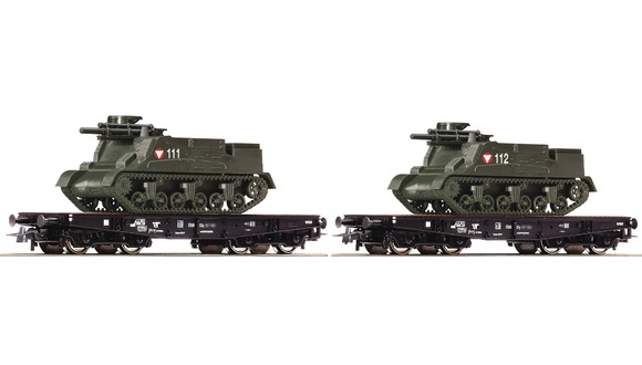 Set 2 ks. plošinových vagonů s nákladem - 2 houfnicemi.