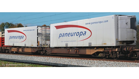 Set 2 ks. plošinových vagonů s nákladem - firma Paneuropa.