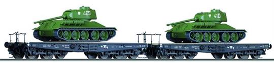 Set 2 plošinových vagonů s nákladem - tanky.