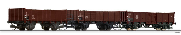 Set 3 otevřených nákladních vozů drah DB s uhlím, délka:244.00 mm, šachta dle NEM:358.