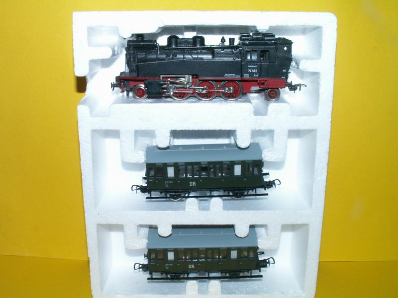 SEt s loko BR 75 drah DR a dvou vozů vše drah DR, model má nanháněny všechny nápravy, souprava uložena v orig krabici, stav:neježděné