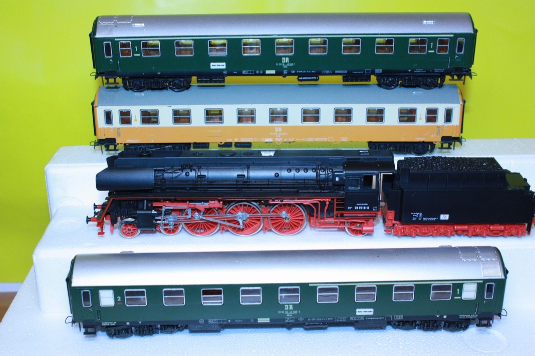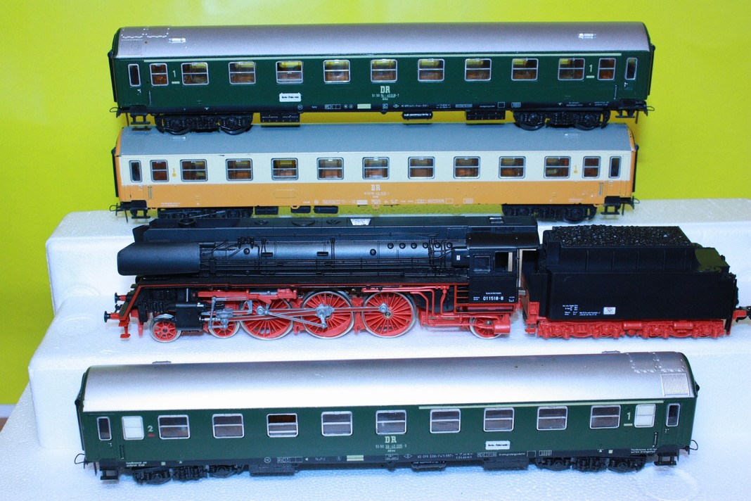 Set s parní lokomotivou BR01+3rychlíkové vozy DR HO