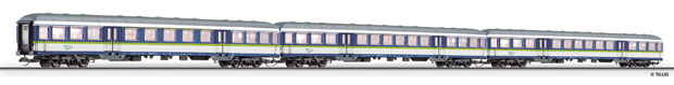 Set tří osobních Silberling vozů - Zug zum Flug ,délka 664.00 mm, vůz je vnitně vybaven a připraven na osvětlení, šachta dle NEM 358.