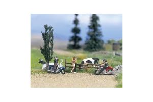 Setkání motorkářů,4 figurky,2motorky,2 zvířata