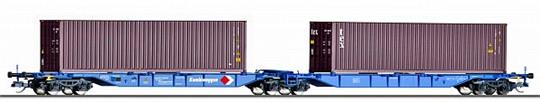 Souprava dvou plošinových vozů Sdggmrs 715 "Kombiwaggon" ložený kontejnery
