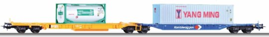 Souprava dvou plošinových vozů Sdggmrs 744 "Kombiwaggon" ložený kontejnery