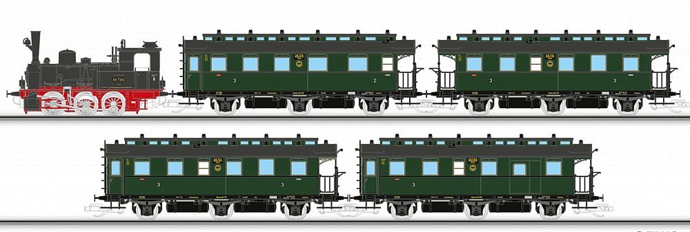 Tillig TT Bahn- Souprava osobního vlaku s parní lokomotivou BR 89.70 a 4 osobními