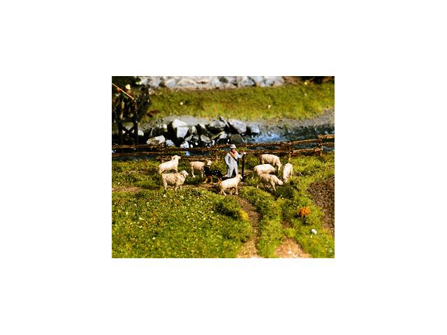 pastýř, 9 oveček, pes.