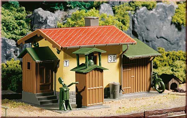 Speciální model. Obdobnou skutečnou stavbu lze nalézt rovnéž v České republice, Polsku, Maiarsku a na Slovensku. Součástí stavebnice jsou příslušné dekorativní prvky - kůlna na nářadí, mechanismem k ovládání závor, vyzvánécí zařízení, stožárová svítidla, jízdní kolo, nádoba na odpadky a žebřík. rozměry: 90 x 60 x 45 mm K dostní v září 2008.
