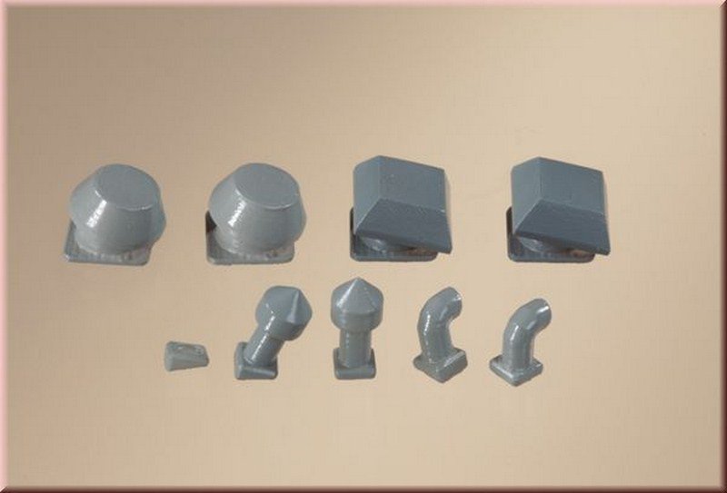 „Nezbytnost“ při ztvárnění průmyslových podniků přesně podle předlohy. K tomu se skvěle hodí naše výrobky kat. č. 80 102 odsávání, ventilátory nebo 80 104 potrubí. 24 kusů čtyřech různých tvarů V prodeji od 09/2012 Měřítko: 1:87 H0
