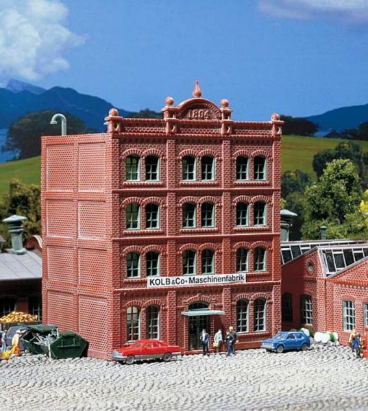 Stavebnice modelu budovy strojírenského závodu. Rozměr: 94 x 81 x 124 mm