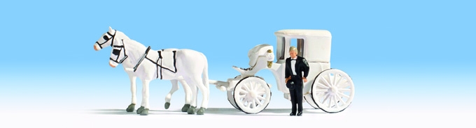 Svatební vůz Set obsahuje postavičku, 2 koně a příslušenství