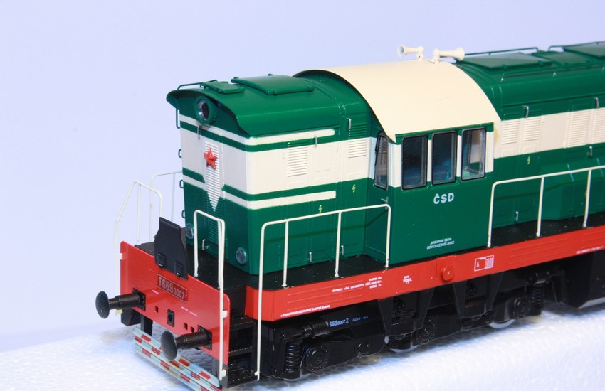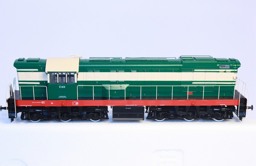 Lokomotivu dodáváme v základní verzi v analogu nebo dle přání zákazníka v digitálu i se zvukovým dekodérem za příplatek. Kompletní pojezdové ústrojí (převodovky, ozubená kola, šneky aj.) jsou tovární americké značky. Pohon zajišťuje kvalitní 5 pólový motor se dvěma setrvačníky. Přenos síly k oběma podvozkům zajišťují zasouvací kardany (kardan se při jízdě do zatáčky prodlužuje). Jízda modelu je tak již od nízkých rychlostí velmi klidná a plynulá. Technické údaje: Profil kol NMRA RP-25. Osvětlení: ano s přepínáním dle jízdy bílá/červená Osvětlení horního čísla na boku lokomotivy: ano Příprava na DCC: ano Plux-22 (22-pin) Hnané nápravy: 6x Bandáže: 1x Délka přes nárazníky: 200mm Minimální rádius: 356mm Tovární pojezd: ano Šachta dle Nem: ano lze tak vložit jakékoliv spřáhlo Jedná část lokomotivy je vybavena spřáhlem, druhá strana hákem, brzdovými hadicemi a ostatními náležitostmi.