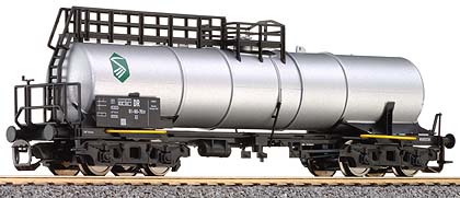 Kotlový 4 nápravový nákladní vůz stříbrné barvy drah DR, délka:120 mm, kinetické krátké spřáhlo.