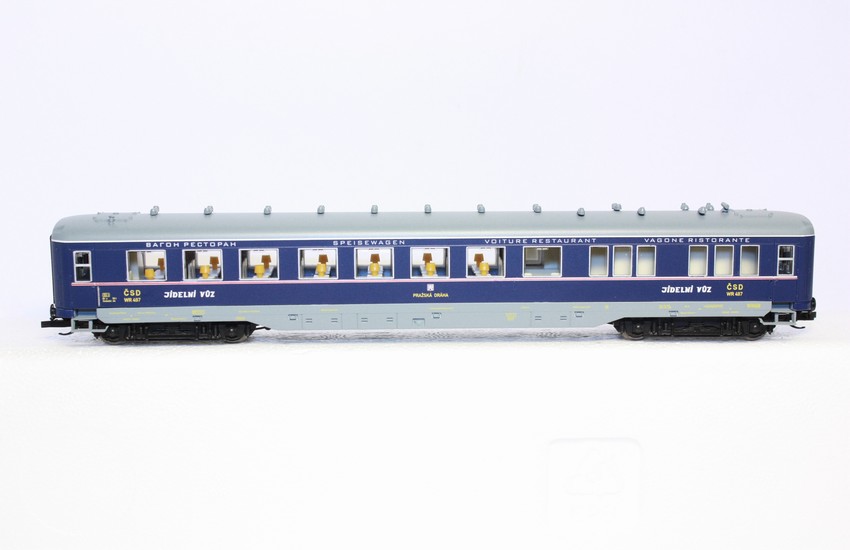 Jídelní vůz drah ČSD v tomto barevném provedení model českých drah nebyl nikdy vyroben jedná se o převratnou novinku. Parametry: Délka-196.00 mm Šachta Nem-358 Osvětlení-model je s přípravou na osvětlení Interiér-vnitřní