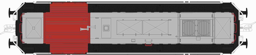 Model má všechny nápravy hnané, pětipolový motor, je připravený na ozvučení. Rozhraní pro DCC NEXT18.