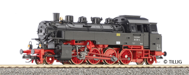 Parní lokomotiva BR 86 drah DR. Příprava na digitál. Délka přes nárazník 113.00 mm 2 bodé osvětlení se mění dle směru jízdy spojení-přijetí do NEM 358 a krátká spřáhlo-kinematika NEM 65.