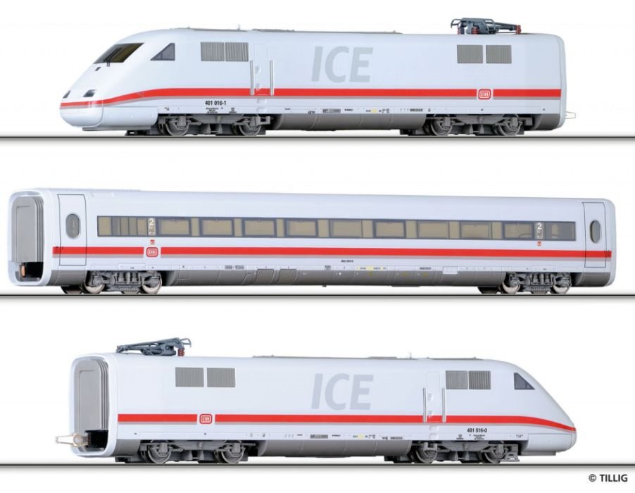 Tillig TT Bahn - ICE vysokorychlostní vlak, 3-dílný (2x řídící vůz, 1x 2.třída), 1.díl (TT)