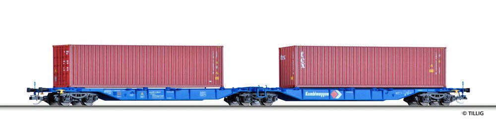 Tillig TT Bahn - Souprava dvou plošinových vozů Sdggmrs 715 "Kombiwaggon" ložený
