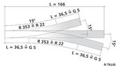 Trojtá vyhýbka pro TT-, úhel 2 x 15°, Délka asi 166 mm, Přiléhavý výměnový přestavník kdy 1x 83531/32 nebo 2 x 86112