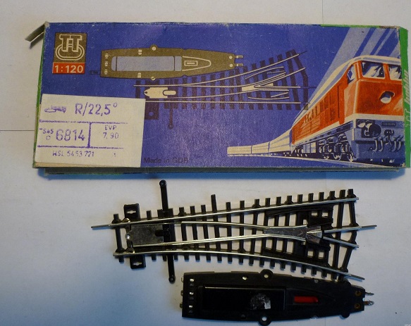 TT Výhybka pravá 6814 22,5° 114 mm BTTB v krabičce přestavník přibalen je třeba namontovat