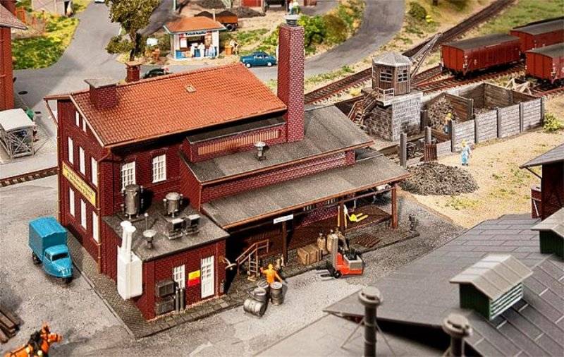 Stavebnice modelu uhelného skladu s krytou nakládací rampou a zásobníkem na uhlí. Rozměr: 236 x 170 x 162 mm, zásobník: 207 x 80 x 110 mm