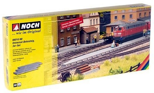 Model tří kusů nástupišť. Nástupiště je vyrobeno ze speciálního laserového kartonu, který kombinuje dvě základní vlastnosti: za prvé je velmi stabilní, na druhé straně se může nožem nebo nůžkami jednoduše vytvarovat do jakéhokoliv tvaru. Balení obsahuje speciální lepidlo. Rozměr: 27,1x8,3x1,1 cm