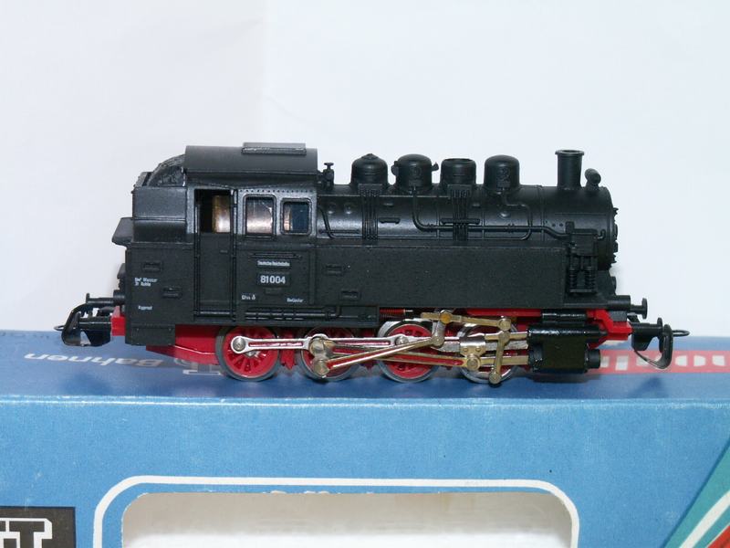 Parní lokomotiva řady BR 81 004 drah německých, všechny nápravy jsou naháněny, bez osvětlení. Lokomotiva má krabičku a průvodní doklad. Výrobcem:Berliner TT Bahnen Stav:nová