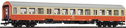 Vůz místní dopravy 2 třídy,v barvě oranžové jako místní expres,dékla 303.00 mm, izolace soukolí, s vnitřním vybavením,vnitřní osvětlení lze dodatečně vybavit, model vlastní krátké kinetické spřáhlo.