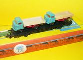 2 osý nákladní vůz s autíčky, které lze sundat jsou umístěny na orig. držáku drah německých , model je uložen v orig. krabičce, spřáhlo lze vyměnit. Výrobce:Zeuke TT Bahn Stav:nové