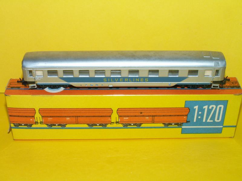 Rychlíkový vagon ve stříbrné barvě s nápisem ,,Silveriness" model je nepoškozen v originální krabičce.