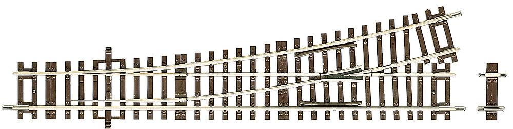 Délka 230 mm, odpojovací poloměr 873,5 mm, odpojovací úhel 15°. Pro stavbu diagonálních úseků je přidán 8 mm mezikus (D8).