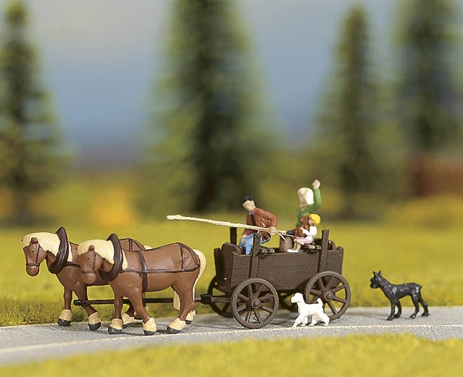 Výlet kočárem,3 postavičky,4 zvířata(2koně,2psi),doplňky