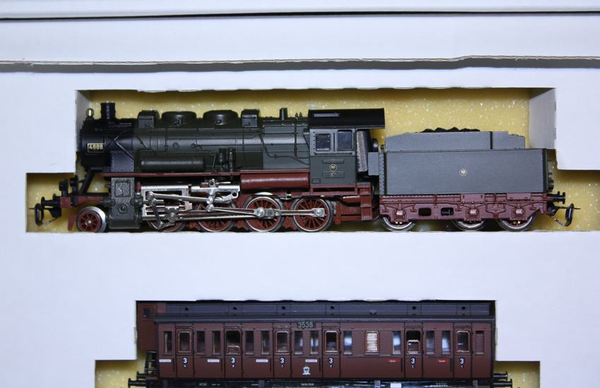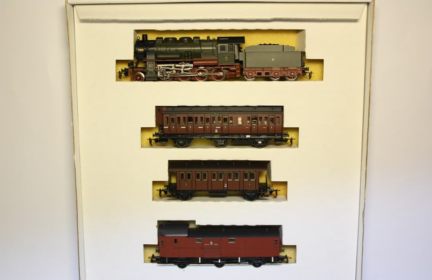 Výroční Postupimský set s lokomotivou BR 56 a 3 osobními vozy vše drah pruských bez orig. krabice. Lokomotiva je opatřena hranatým motorem bez přípravy na DCC.