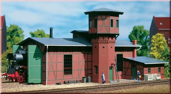 Výtopna s vodárenskou věží. Výtopna délka stání: 208mm Rozměry: 245x120x127mm
