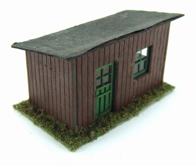 Zastávka v hnědém provedení je ze skutečného dřeva. Okna a dveře jsou laserována z papíru.