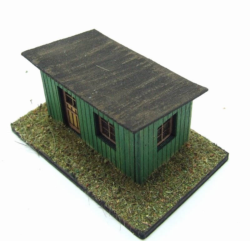 Okna a dveře jsou z tvrdého kartonu. Samotná budova je vyřezaná laserem ze dřeva.