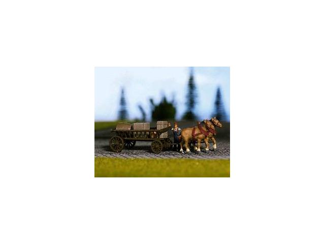 Vůz se 2 tažnými zvířaty, 1 postavička, drobné součásti.