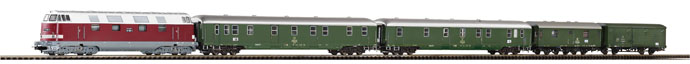 Dieslová lokomotiva řady BR 118 s 4 poštovními vozy, drah DR Model je osvětlen s přepínáním dle jízdy. Příprava na digitál. Šachte dle NEM