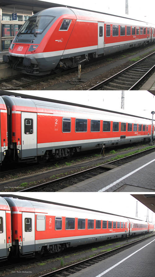 Set osobních vozů „München-Nürnberg-Express“, sestávající ze 2 osobních vozů 2. tř. (Bpmz) a 1 řídícího vozu Bpmbdzf 296.3, v červeném zbarvení