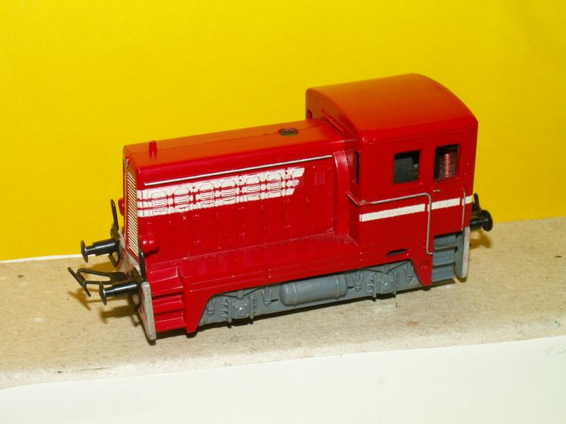 Dieselová lokomotiva červené barvy drah ČSD model má naháněny obě dvě nápravy, má krabičcka, není osvětlen. Stav: nepoužité