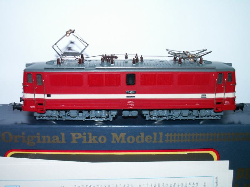 Elektrická lokomotiva řady BR 211 červené barvy drah německých, naháněny jsou čtyři nápravy. Proud lze odebírat buď z koleje anebo po přepnutí z troleje, čelní osvětlení se přepíná dle směru jízdy a to buď bíle anebo červeně. Stav: Nové