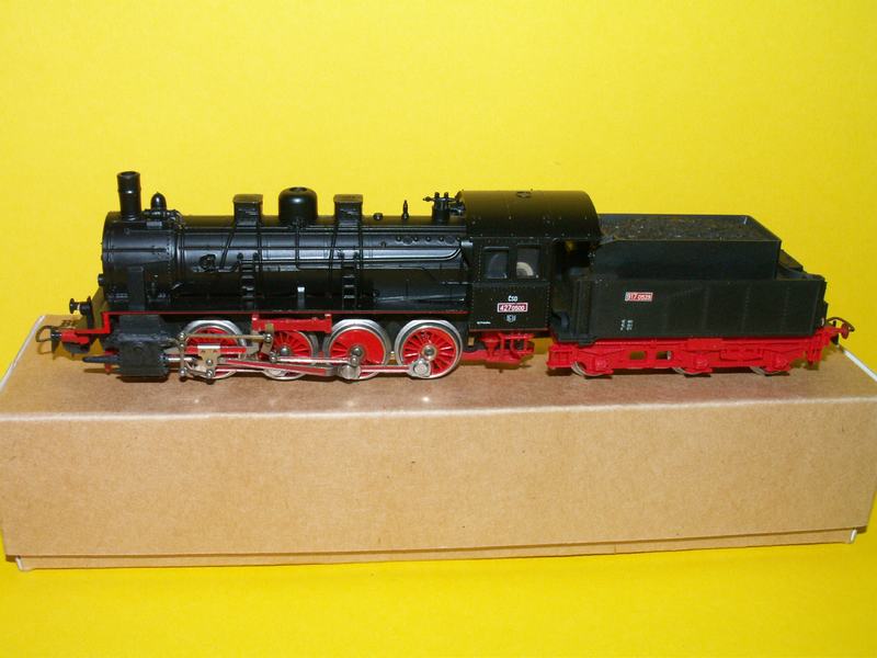 Parní lokomotiva černé barvy a to řady 427 ČSD