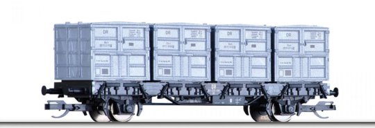 18076 Tillig TT Bahn - Souprava dvou plošinových vozů ložené kontejnery Sggmrs 747